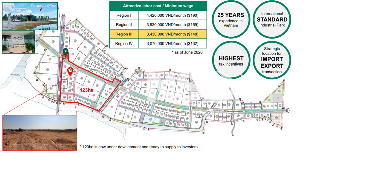Industrial park management fee : 0.6 USD/m2/year. This fee is paid annually in the first month of the year