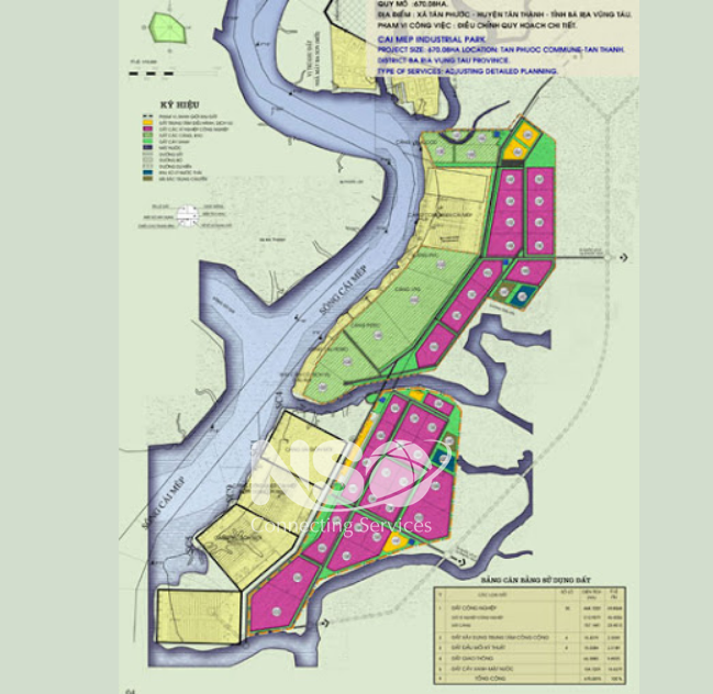 –Land use structure: The total land area of Cai Mep industrial park is 670ha, the planning of land use structure can be as follows: