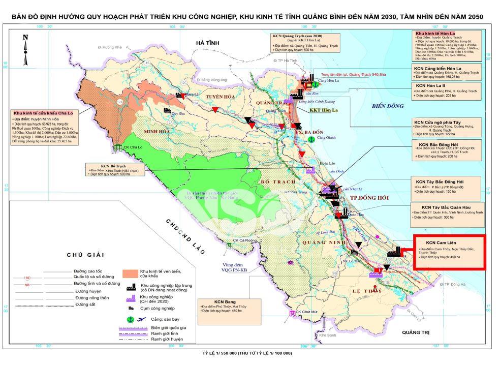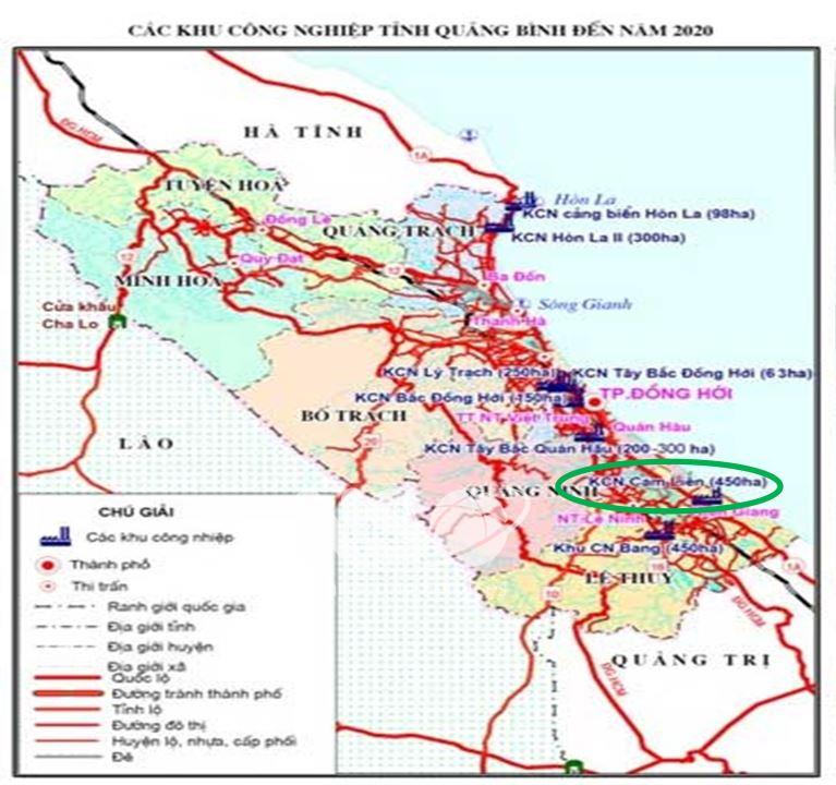 Cam Lien Industrial Park with the upgrade route of National Highway 1A passing, about 1.5km from National Highway 1A, about 7km from Kien Giang Town to the West, located within the administrative boundaries of three Cam Thuy communes. , Thanh Thuy commune, Ngu Thuy Bac commune - Le Thuy district - Quang Binh province