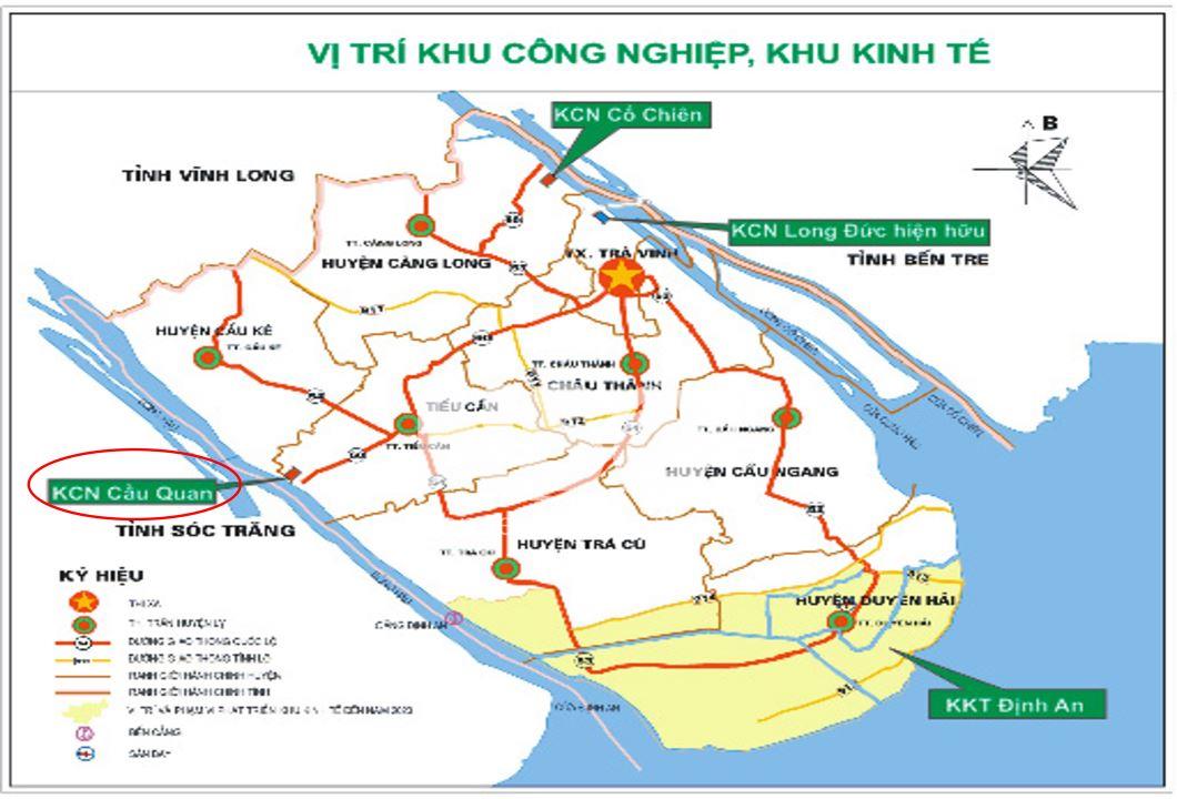 On March 12, 2010, the Provincial People's Committee issued Decision No. 422/QD-UBND approving the detailed construction of Cau Quan Industrial Park, Tra Vinh province (planning rate is 1/500, planning area is 130.33ha).