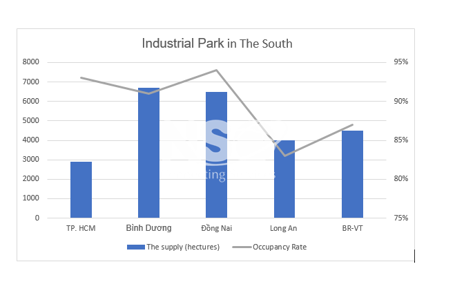 The supply of industrial land in five key provinces in the South including Ho Chi Minh City HCM, Binh Duong, Dong Nai, Long An, Ba Ria-Vung Tau reached more than 25,000 hectares. Fake land lease averages about 135 USD/m2/lease period. In particular, TP. HCM leads compared to the rest of the provinces with 198 USD/m2/period, twice as high as Binh Duong and Ba Ria Vung Tau.
