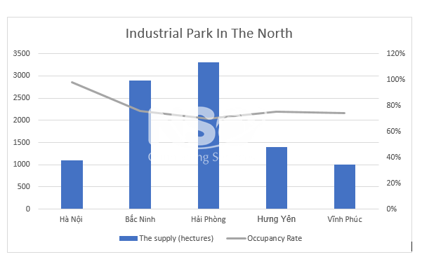 Although the industrial market in the North was established later than in the South, the industrial provinces here are very attractive for advanced high-tech industries. Most industrial park projects have been filled stably with an average rate of about 80%.