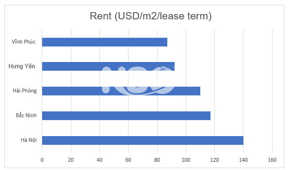 The average rental price of industrial park land reached 109 USD/m2/lease term, in which, the average industrial land rental price in Hanoi is still the highest compared to the northern provinces, reaching 139.9 USD/m2/lease period.