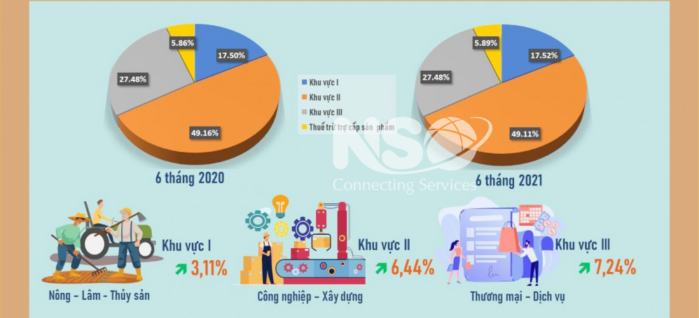 - In 2021, the Economic Growth Rate (GRDP) of Long An province reached 6.06% (4.34% higher than the same period), of which, all 3 regions achieved higher growth over the same period.