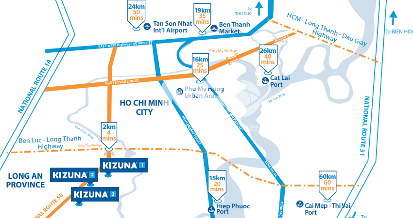 - Connected to HCMC through Quoc Lo 50