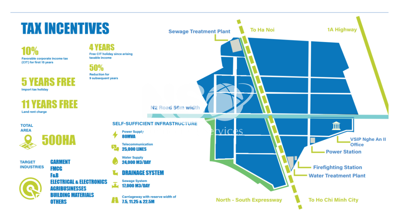 Nghe An 2 Industrial Park enjoys tax incentives like those of the Southeast Economic Zone