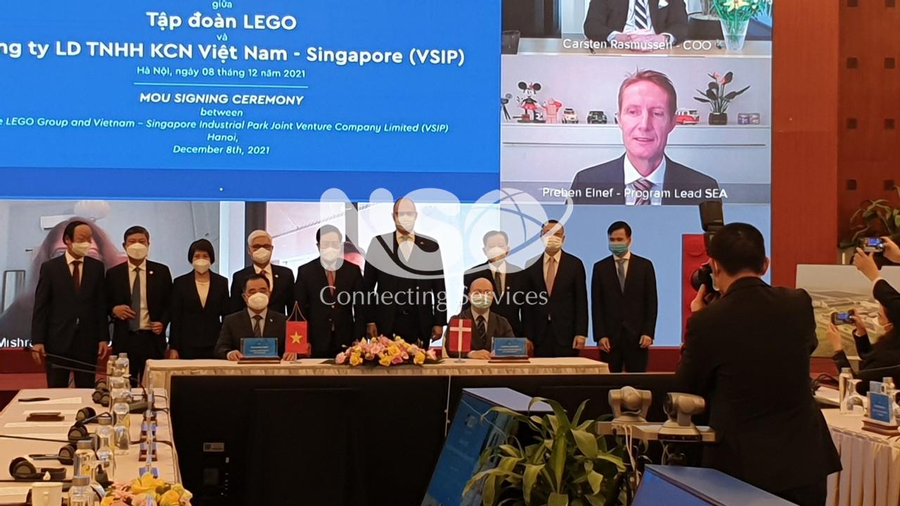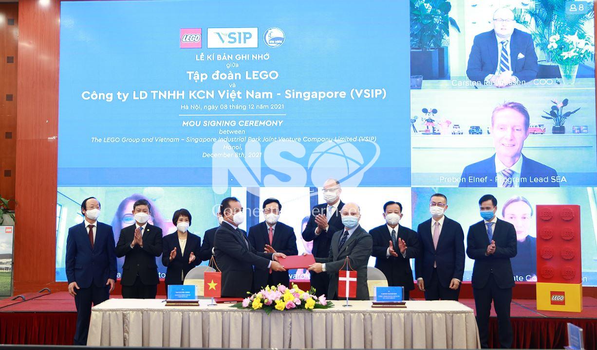 On the afternoon of December 8, in the presence of Permanent Deputy Prime Minister Pham Binh Minh, LEGO Group had a ceremony to sign a Memorandum of Understanding with Vietnam-Singapore Industrial Park Limited Company (VSIP) to build a new factory in Binh Duong.