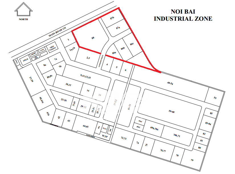 To the west - south of the industrial park is adjacent to Noi Bai International Airport, in front of the industrial park is provincial road 131 running through, connecting national highway 3 with national highway 2 and Thang Long - Noi Bai highway; roads to Hai Phong port and Cai Lan port.