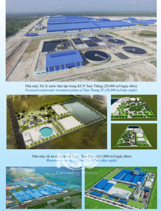 Wastewater and waste treatment systems: Invested and operated a centralized wastewater treatment plant of 28.000 m3/day and a wastewater reuse plant with a capacity of phase I – 13.000 m3/day to supply water to businesses for production.