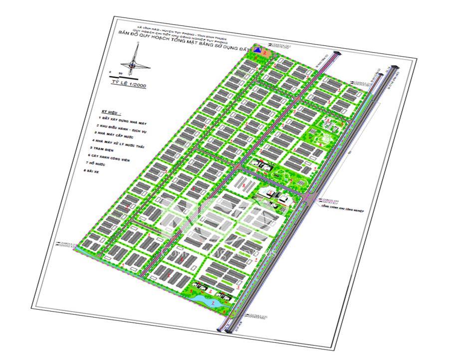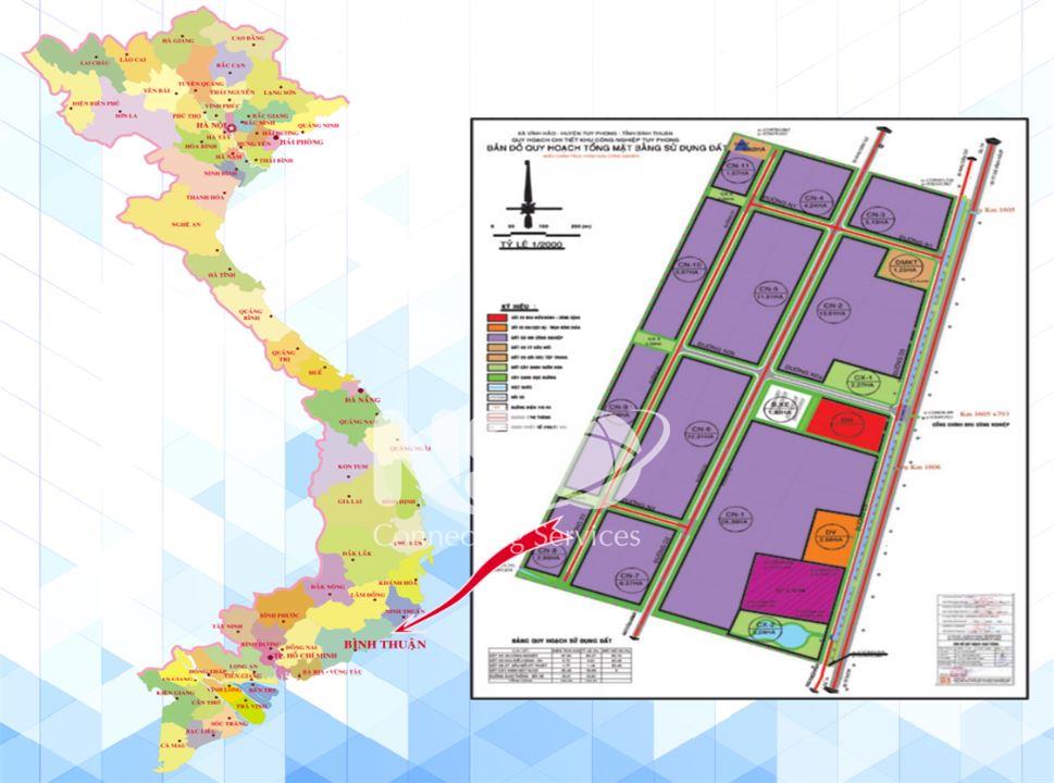 1. Location of the Industrial Park: Located in the administrative boundary of Vinh Hao Commune, Tuy Phong District, Binh Thuan Province; The North: adjacent to the Project Land - Vinh Hai Residential Area; East: bordering National Highway 1A ; West: bordering Vinh Hao mineral water exploitation area ; South: bordering Vinh Hao mineral spring service area;