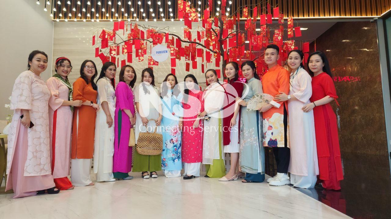 With the theme "Traditional Tet" focusing on the beauty of Vietnamese culture, attendees wore traditional ao dai with many styles and colors.